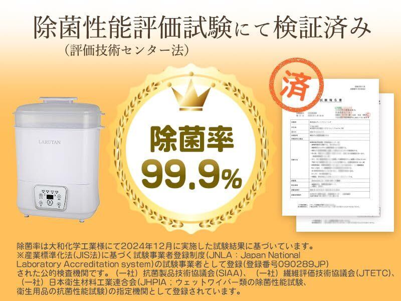 【助産師さんも推薦】哺乳瓶除菌乾燥機 ミルクウォーマー 哺乳瓶乾燥 除菌 スチーム除菌 哺乳瓶洗い 保管ケース LARUTAN 日本語説明書付き PSE取得 (ホワイト)
