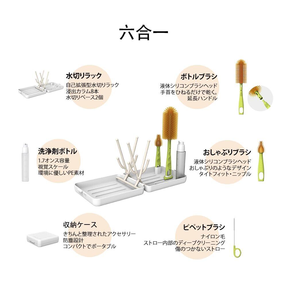 【特価商品】VOGOGE 哺乳瓶洗い 旅行 哺乳瓶ブラシ 持ち運び 付き哺乳瓶乾燥ラック 赤ちゃん旅行の必需品 ホワイト