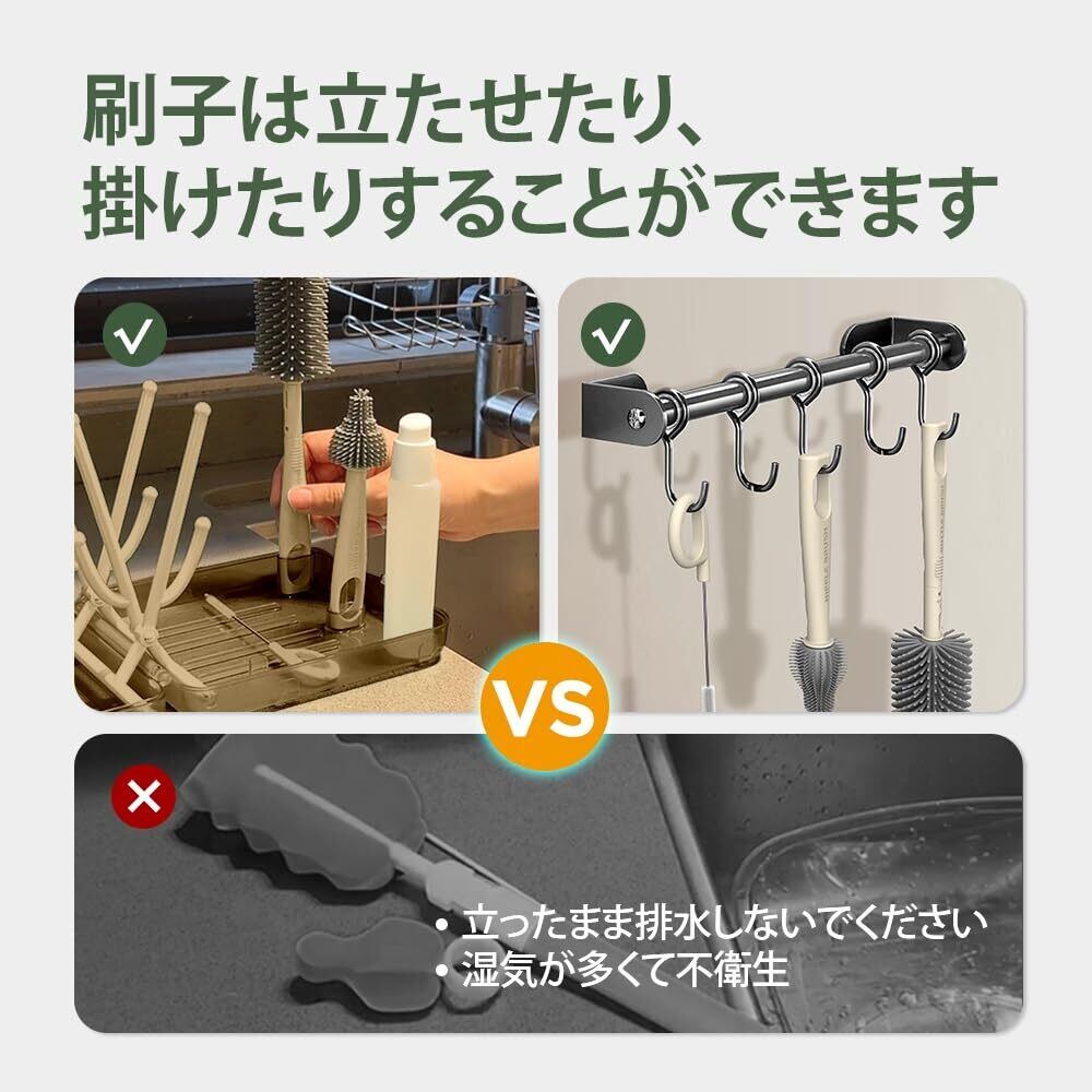 哺乳瓶ブラシは、哺乳瓶ラックのスロットにしっかり固定でき、空気乾燥させながら衛生的に保管できます。哺乳瓶洗い 持ち運びに最適な設計です。