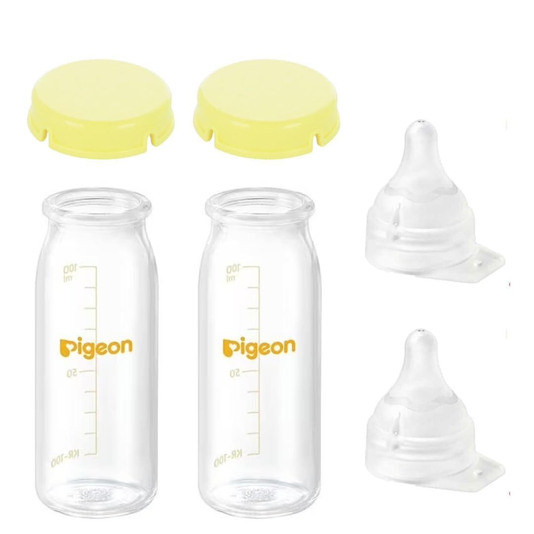 ・ピジョン哺乳瓶 KR-100×2個 ・ピジョン母乳実感 直付け乳首(一般新生児用)×2個 ・ピジョンKRキャップ (イエロー)×2個