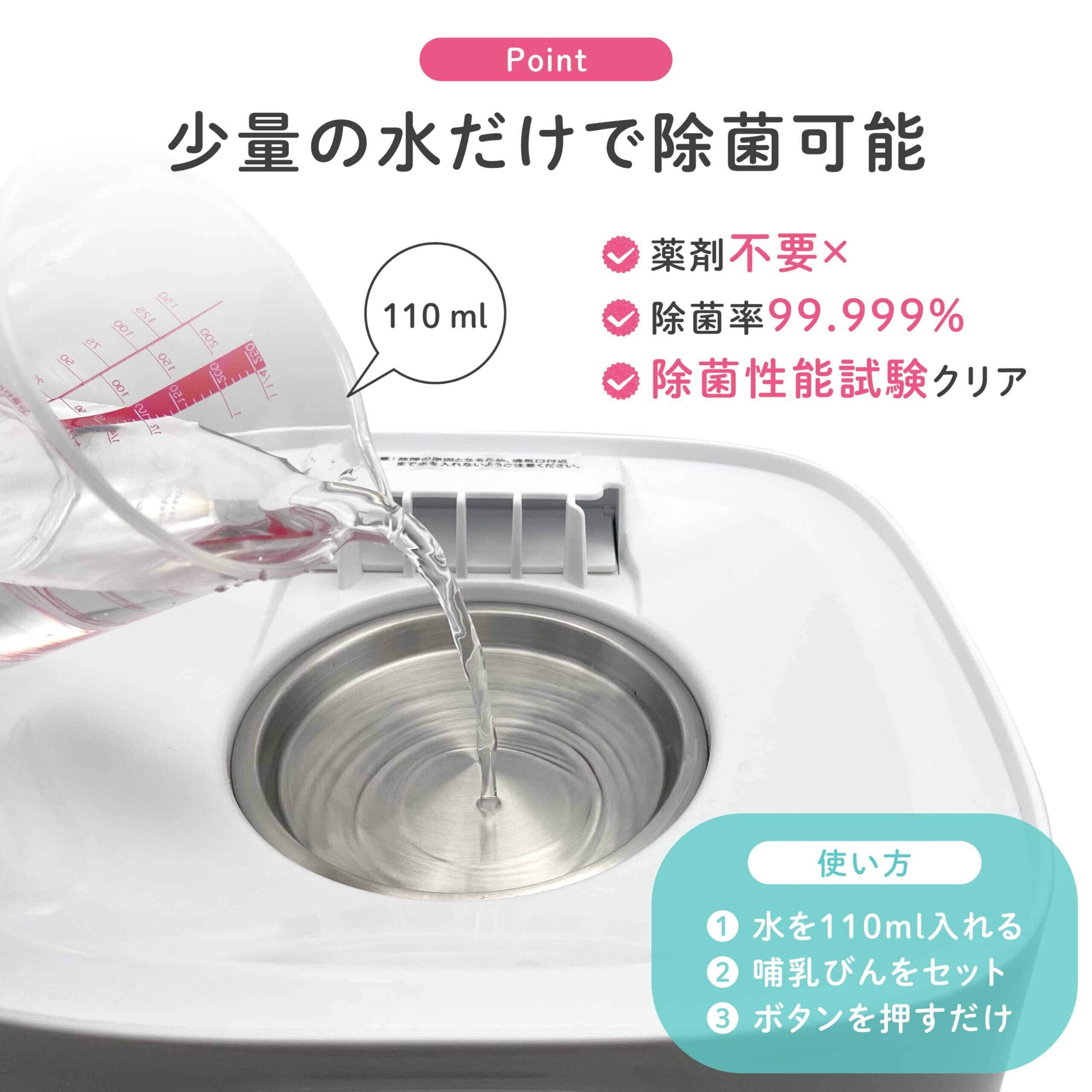 【ボタンひとつで除菌~乾燥まで完了!】水を入れるだけで高温スチーム!『時短◎』『簡単◎』『コスパ◎』