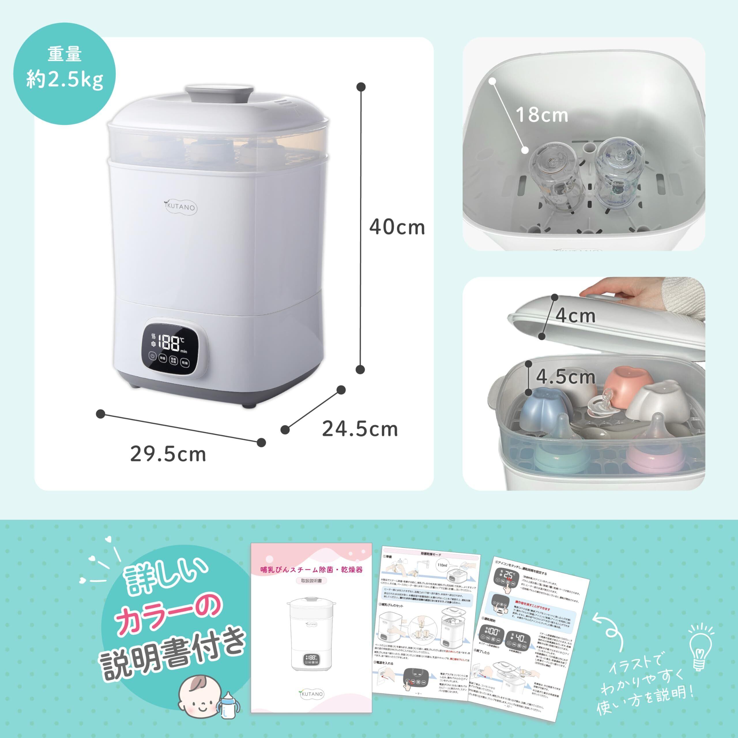 【助産師さん推奨】イクタノ 哺乳瓶 スチーム除菌 乾燥機 スチーム 除菌 乾燥 ラック 哺乳びん 保管ケース 日本語説明書付き PSE取得 ホワイト