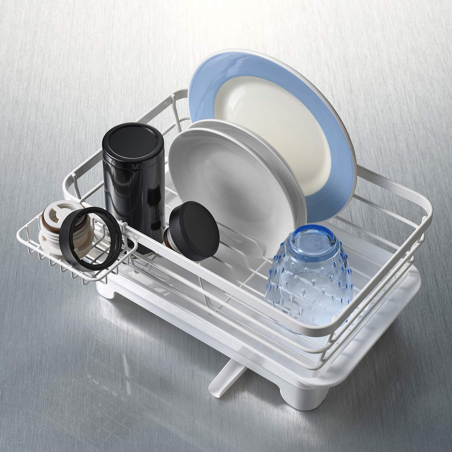 ●1~ 2 人分の食器を水切りできます。●小物の水切りに便利 なワイヤーポケット付 。●トレーは流れる仕様!可動式の排水ノズルで排水位置を変えられます。