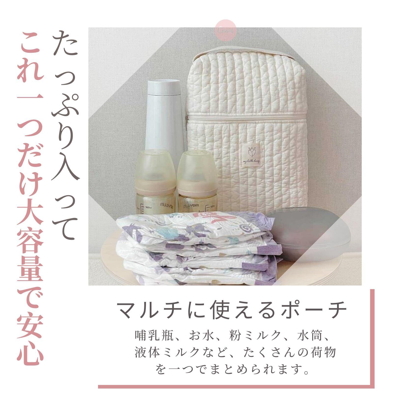 多機能でたっぷり収納:このキルティングの哺乳瓶ポーチは、見た目以上の収納力があり、使い勝手が抜群です。