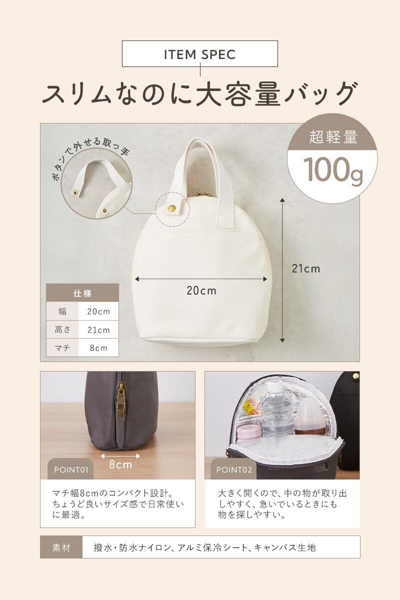 保冷・保温対応で一年中快適 内側にアルミ保冷シートを採用。冬はミルクを温かく、夏は飲み物を冷たくキープできます。