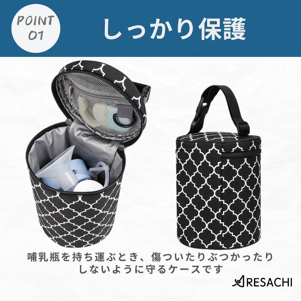 ARESACHI 哺乳瓶ポーチ 哺乳瓶ケース ミルクケース 保温 保冷 持ち運び (ブラック)