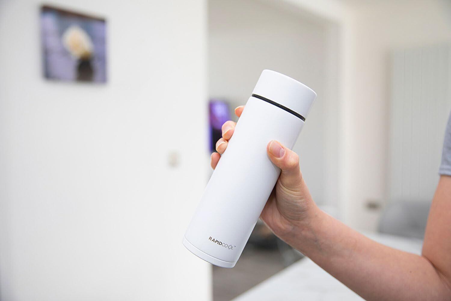 ラピッドクール(RapidCool)に沸騰したお湯と粉ミルクを入れてシェイクするだけ。 約2〜5分でミルクが授乳に適した温度に冷めます。 (※お湯の量によります。) そのまま1時間ほど温度をキープするので、時間を置いて授乳することも可能です。 流行に左右されることのない、シンプルで使いやすいデザイン。カラーはホワイトとグレーの2色展開になっています。 本体直径は65mmと、バッグなどのちょっとした隙間にすっぽり入るスリムな形状で、持ち運びにも便利。フィルターレスなのでお手入れも簡単です。 電力を使わずボトルの構造のみで冷却・保温するので、おうちでもお外でも使えます。 吸熱素材を用いた特殊設計により、最短2分でお湯を授乳に最適な約40℃程度まで冷まします(※)。 また、ボトルは真空構造になっているので、そのまま適温を約1時間ほどキープしてくれます。 本体はステンレススチール製で、マイクロプラスチック・BPAフリーなので安心です。※ミルク量90mlで約2分、240mlで約5分ほどで冷めます。