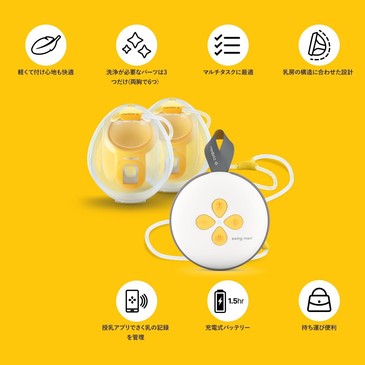 メデラ スイング・マキシ ハンズフリー電動さく乳器 ダブルポンプで時短+授乳ブラの中に入れてハンズフリーさく乳が可能に 母乳育児をサポート 搾乳機 搾乳器 電動 搾乳