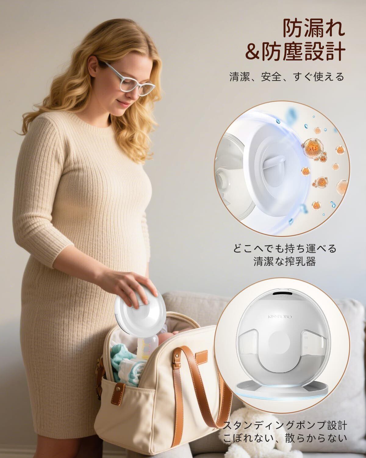 【BPAフリーの安全素材】 食品グレードのシリコン素材を使用し、肌にやさしく、BPAフリーでママと赤ちゃんの健康をしっかり守ります。モーター部分を除き、全てのパーツは取り外して洗浄可能です。逆流防止設計で衛生面にも配慮されています。