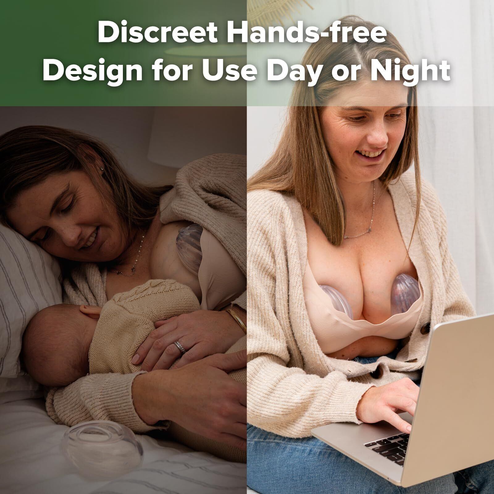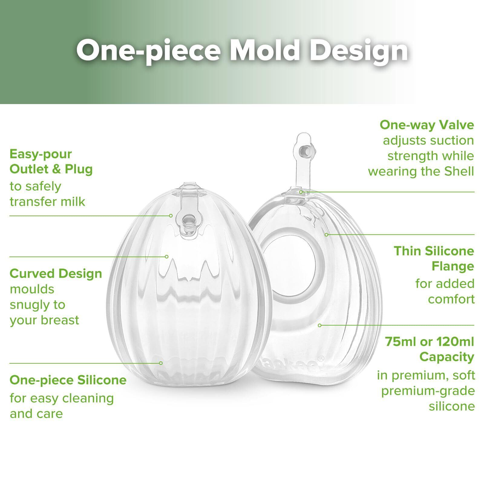 2イン1のハンズフリーポンプ&ミルクコレクター:Haakaa Shellは、ミルクコレクターとして簡単にポンプでくんだり、ブラの中に着用したりできます。ハンズフリーで効果的なミルク収集体験を提供し、隠し場所を作ることができます。