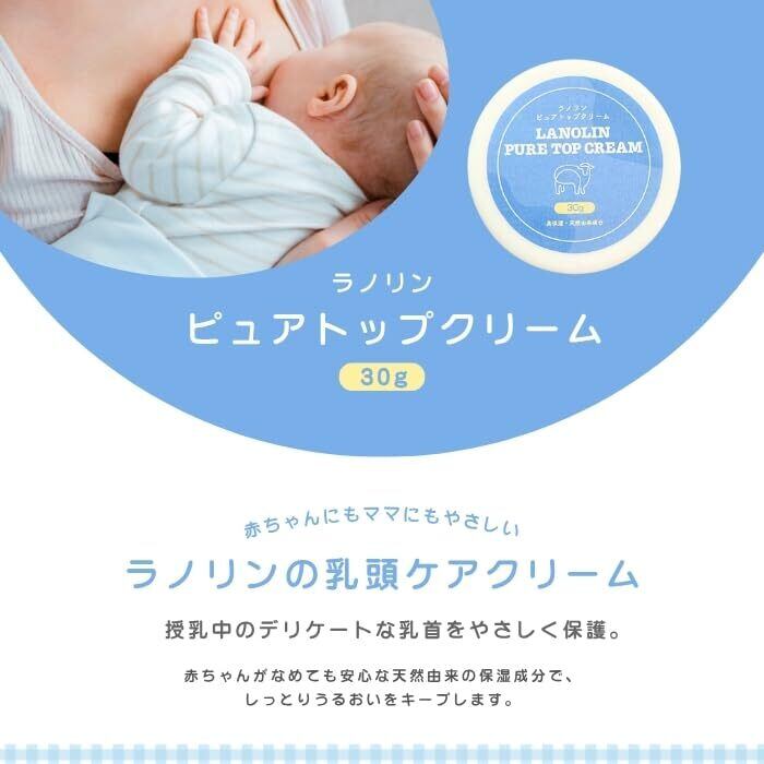 ラノリン 乳頭保護クリーム ピュアトップクリーム 30g COSMOS認証取得 乳頭ケア ラノリンクリーム 天然 赤ちゃん 保湿 全身 母乳 乾燥 対策 コンパクト 天然ラノリン100%