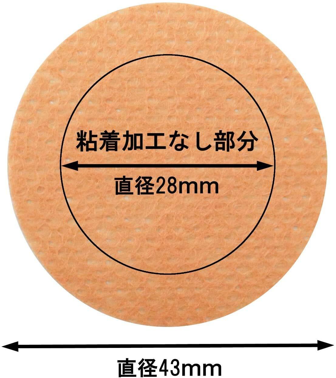 【仕様】・内容量:6セット入×4箱(テスト用小パッチ付き、携帯に便利な紙ケース付き) ・材質:ポリエステル不織布、合成ゴム系粘着剤 ・シールサイズ:直径43mm(1枚) ・テスト用パッチ:直径10mm(1枚) ・原産国:日本