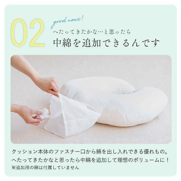 ●中綿を調節できる「セルフフィルスタイル」 クッション本体のファスナー口から中綿を出し入れできるのが特徴。ご自分の好みの高さ、硬さにクッションを調節できます。またクッションがへたってきたらクッション口から手で中綿をほぐしたり、新しい綿を追加したりできるのでいつまでもボリュームキープできる優れもの。