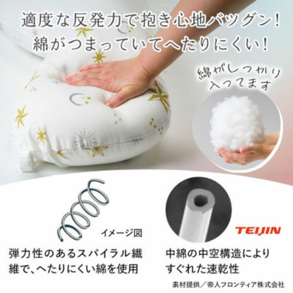中綿にはへたりにくいスパイラル繊維&乾きやすい中空糸を使用しているので妊娠中から産後まで長く使えます。