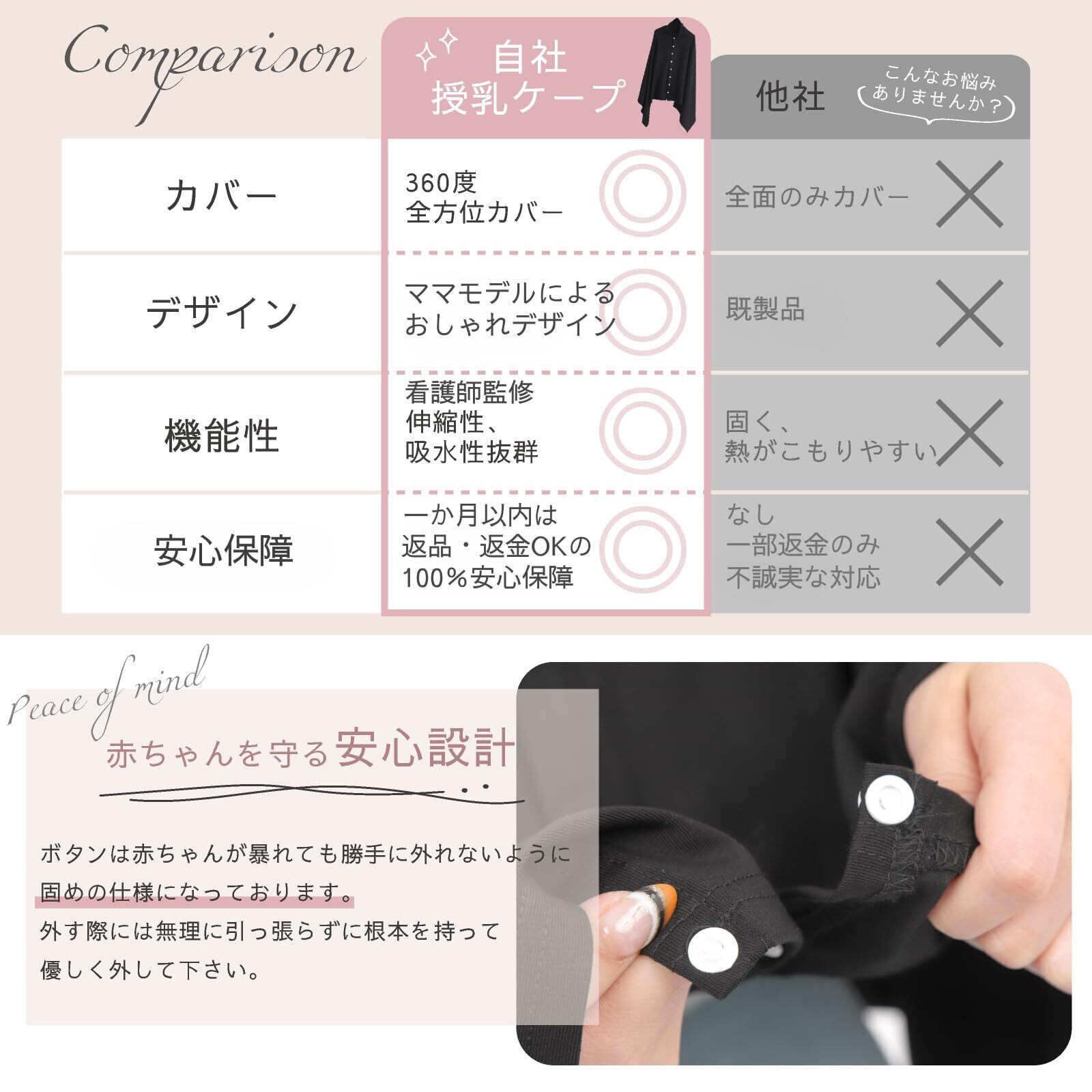 [1up-eleven] 授乳ケープ 【現役ママモデルデザイン&看護師推薦】 綿100% 360度 安心 透けない 授乳 ケープ ポンチョ 服 (ブラック2)