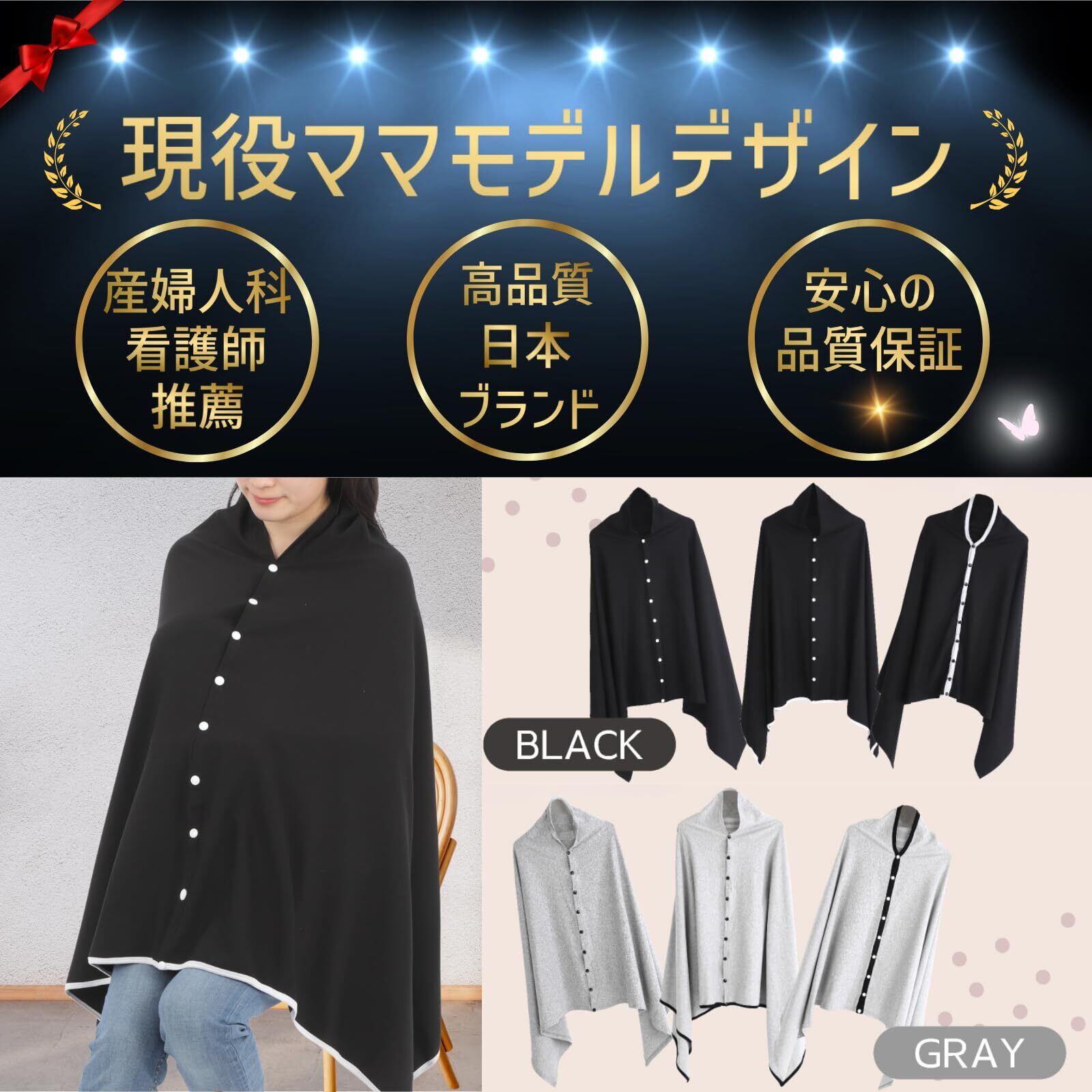 【特価商品】[1up-eleven] 授乳ケープ 【現役ママモデルデザイン&看護師推薦】 綿100% 360度 安心 透けない 授乳 ケープ ポンチョ 服 (ブラック2)
