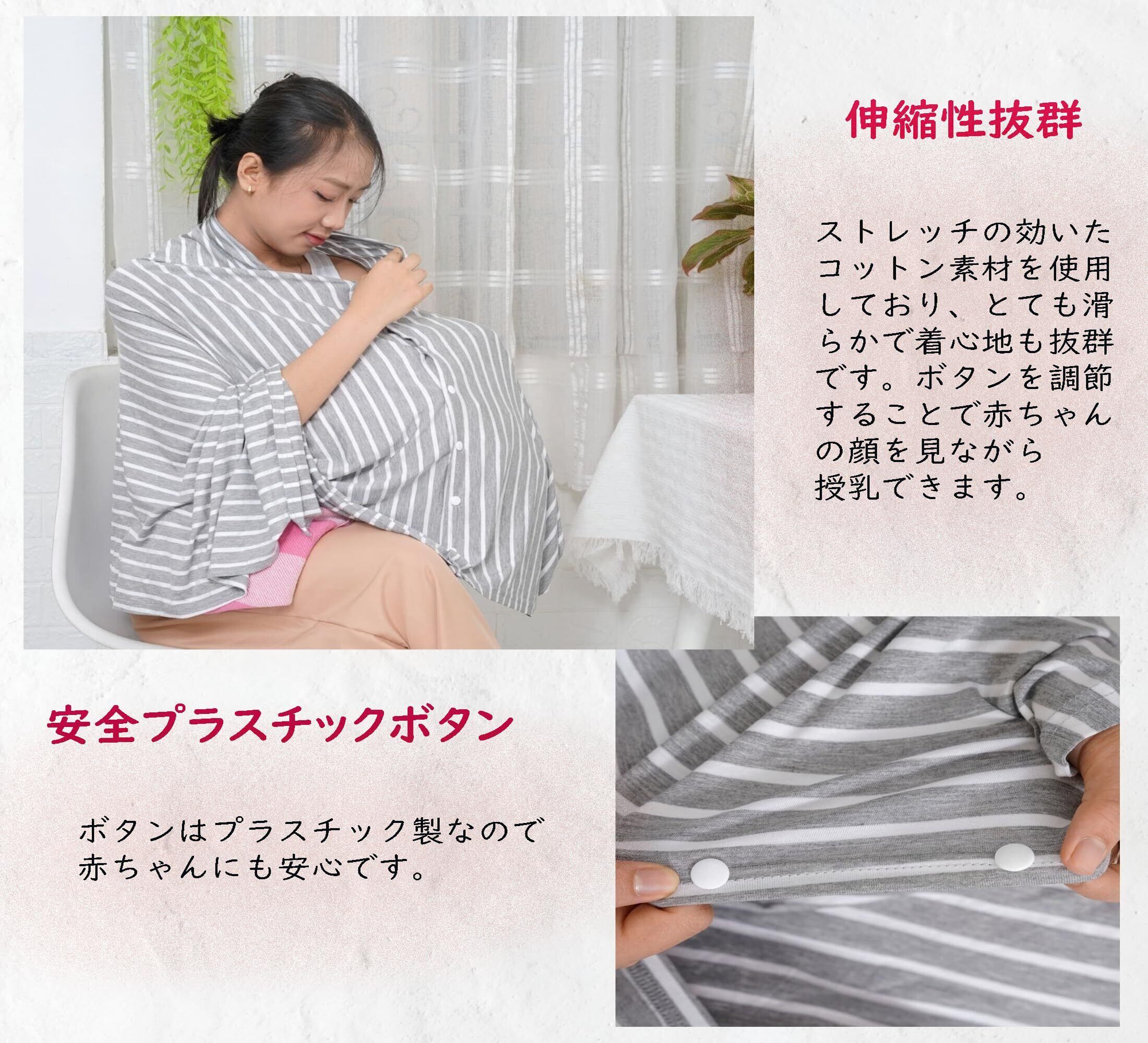 【伸縮性抜群・オールシーズン使用可能】生地には伸縮性があり、綿素材でさらさらとした肌ざわり。ボタン調整で赤ちゃんの顔を見ながら授乳することができます。透けない生地なので、着用時も安心です。汗をよく吸収します。オールシーズンお使いいただけます。