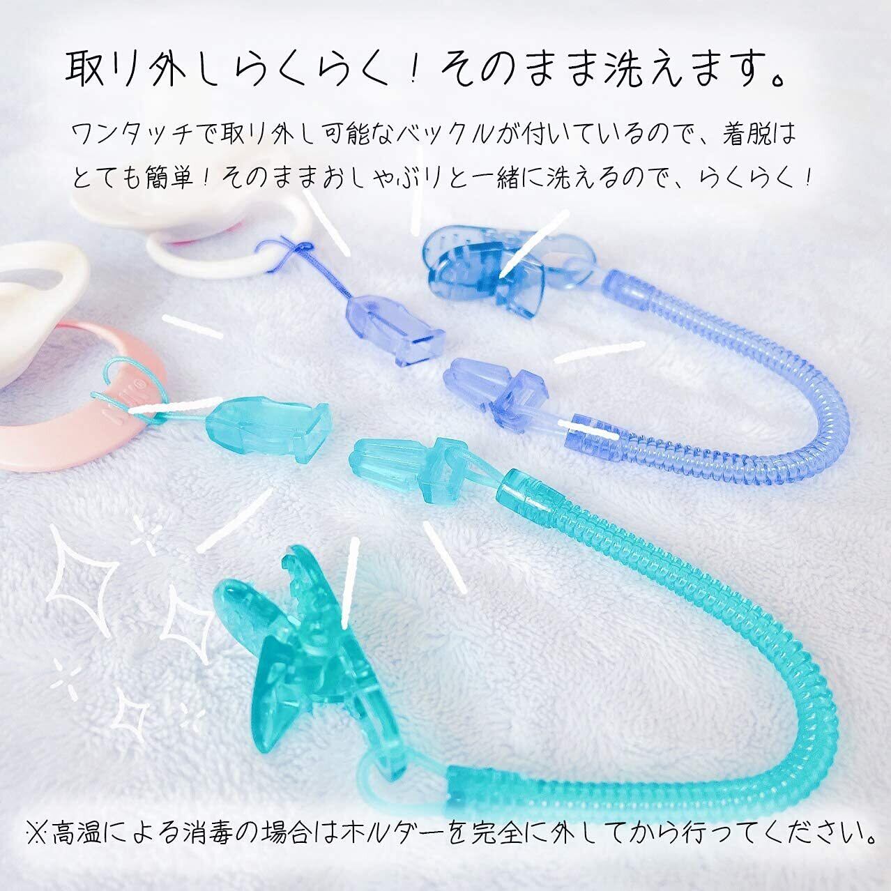 ワンタッチで取り外し可能なバックルが付いているので、着脱は とても簡単!そのままおしゃぶりと一緒に洗えるので、らくらく!