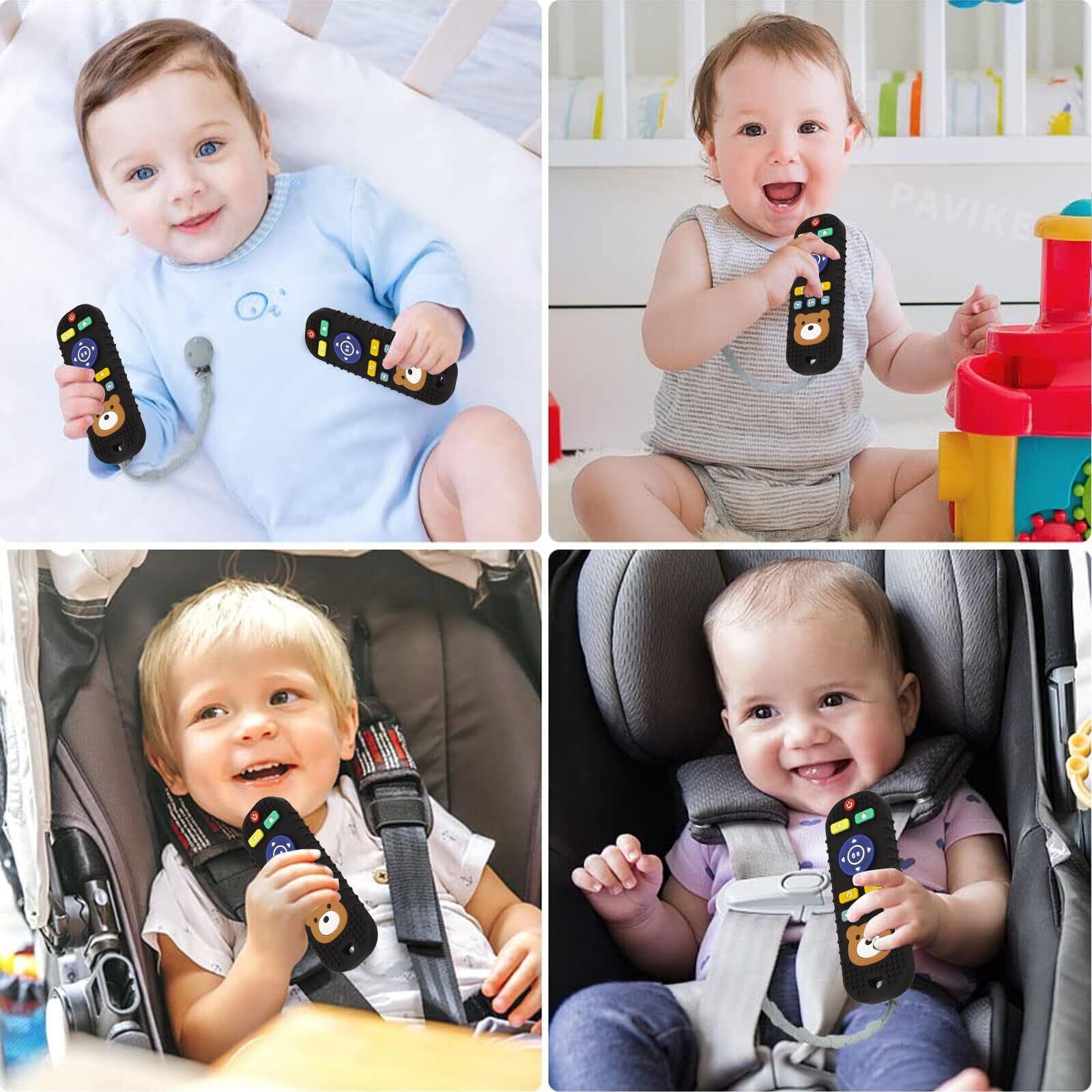 PAVIKE 赤ちゃんおもちゃ 可愛いクマ シリコン製 歯がため 早期教育 知育玩具 洗える 子供用 赤ちゃん リモコン玩具 おもちゃ 感覚刺激 感覚おもちゃ 出産祝い 誕生日プレゼント 水洗い可能