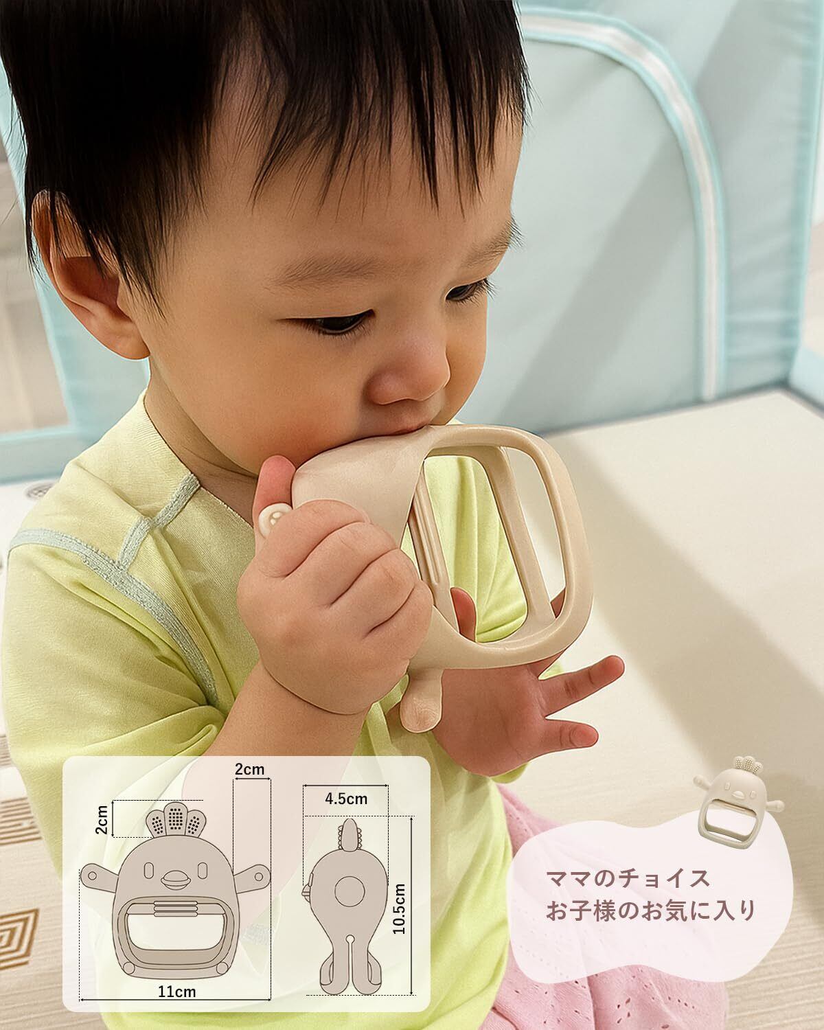 【赤ちゃんは指しゃぶりが大好き?ひよこ型の歯固めでよだれの悩みを解決!】生後4~6ヶ月頃から歯が生え始める赤ちゃんは多く、歯茎の腫れ、痛み、よだれなどの症状が現れます。歯固めおもちゃは歯茎をマッサージし、不快感を和らげます