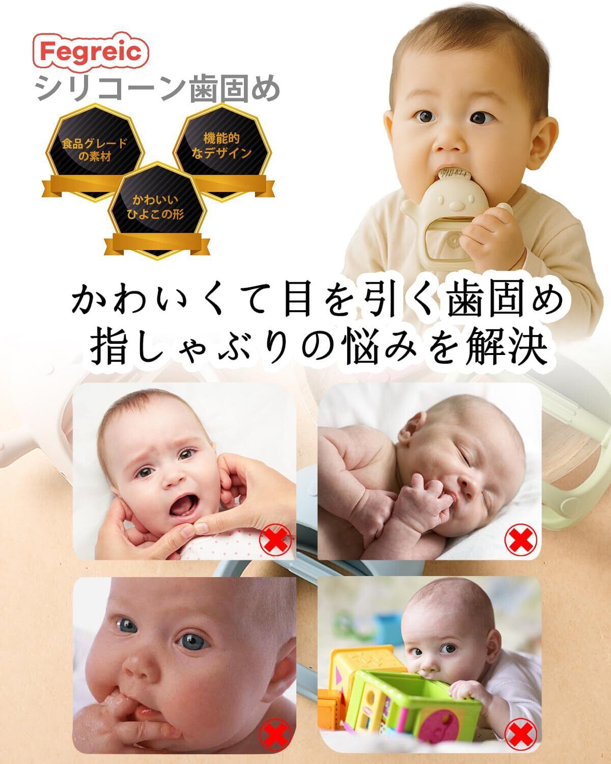 【在庫セール】Fegreic 歯固め 赤ちゃん、新生児用はがため おもちゃ 赤ちゃん 0歳 3ヵ月 1歳、洗えるシリコン製グローブおしゃぶり、グリップデザインかみかみチキン 手の運動、歯が生える不快感を和らげる模造乳首デザイン、BPAフリー