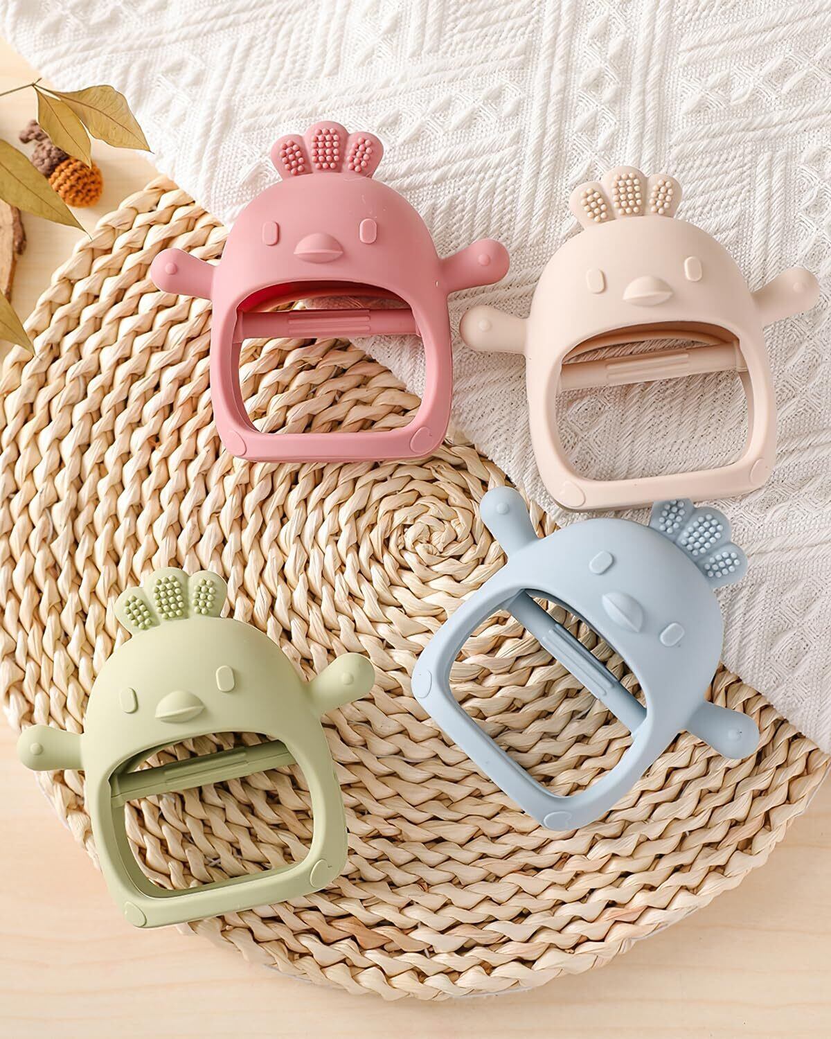 Fegreic 歯固め 赤ちゃん、新生児用はがため おもちゃ 赤ちゃん 0歳 3ヵ月 1歳、洗えるシリコン製グローブおしゃぶり、グリップデザインかみかみチキン 手の運動、歯が生える不快感を和らげる模造乳首デザイン、BPAフリー