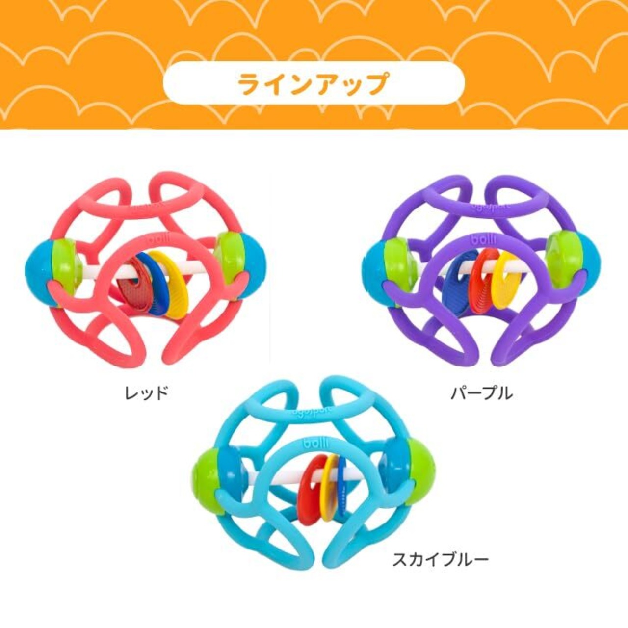 にぎって、かじって、ひっぱって、歯固めボール、ボリィから、ラトルが新登場