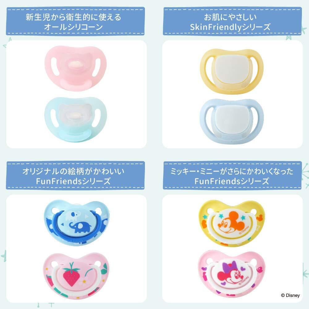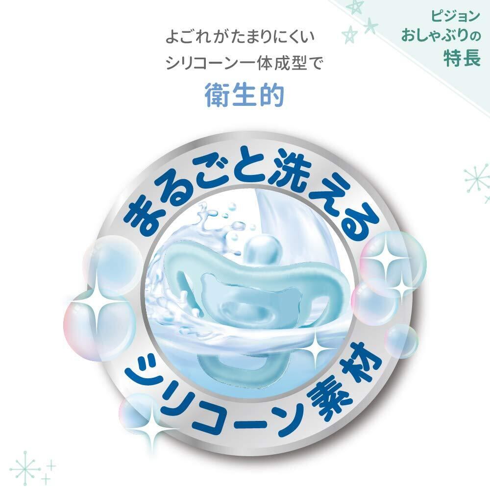 ●新生児から使える衛生的に使えるオールシリコーンおしゃぶり。<br>●歯の発育を考えた小児歯科医監修。 <br>●衛生面が心配で、吸う力が弱い新生児におススメな4つのポイント。<br> (1)かたち:赤ちゃんが舌を自然に動かしやすい乳首形状 <br>(2)やわらかさ:アゴの負担が少ないやわらかさの乳首で、おくちの動きに柔軟にフィット <br>(3)重心バランス:吸っているときに口から落ちにくい安定感のある設計 <br>(4)衛生的:まるごと洗えて隙間に汚れがたまりにくい、シリコーン一体成型 <br><br>【歯の発育を考えた小児歯科医監修】 ・しゃぶる行為には、赤ちゃんの気分を鎮め、落ち着かせる効果があります。このおしゃぶりは歯列への影響が少なくなるよう、おしゃぶりの軽さ、くわえやすさ、吸い口のやわらかさと形に工夫をしました。それでも、使用時間や時期には配慮が必要です。1才を過ぎたら1日の使用時間を徐々に減らし、2才半までには使用をやめるようにしましょう。(小児歯科医 井上美津子先生)