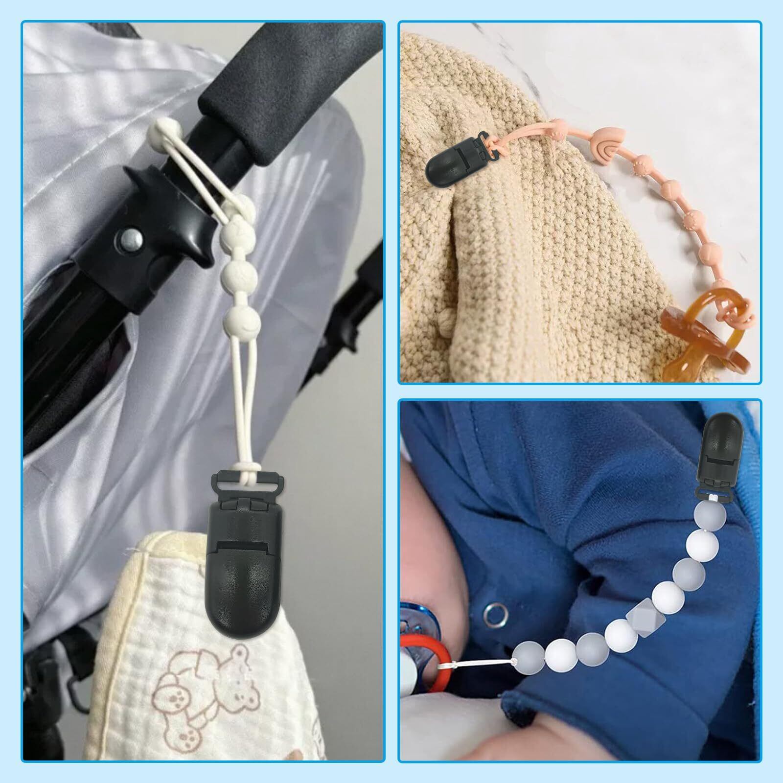 【幅広く適用】本項のワンタッチクリップは乳首、乳首をなだめる、よだれ防止ポケット、衣類、毛布、ベビーカー、学生証クリップ、自動車シートなどの多種のシーンに適合し、多機能設計は多元的な需要を満たす。