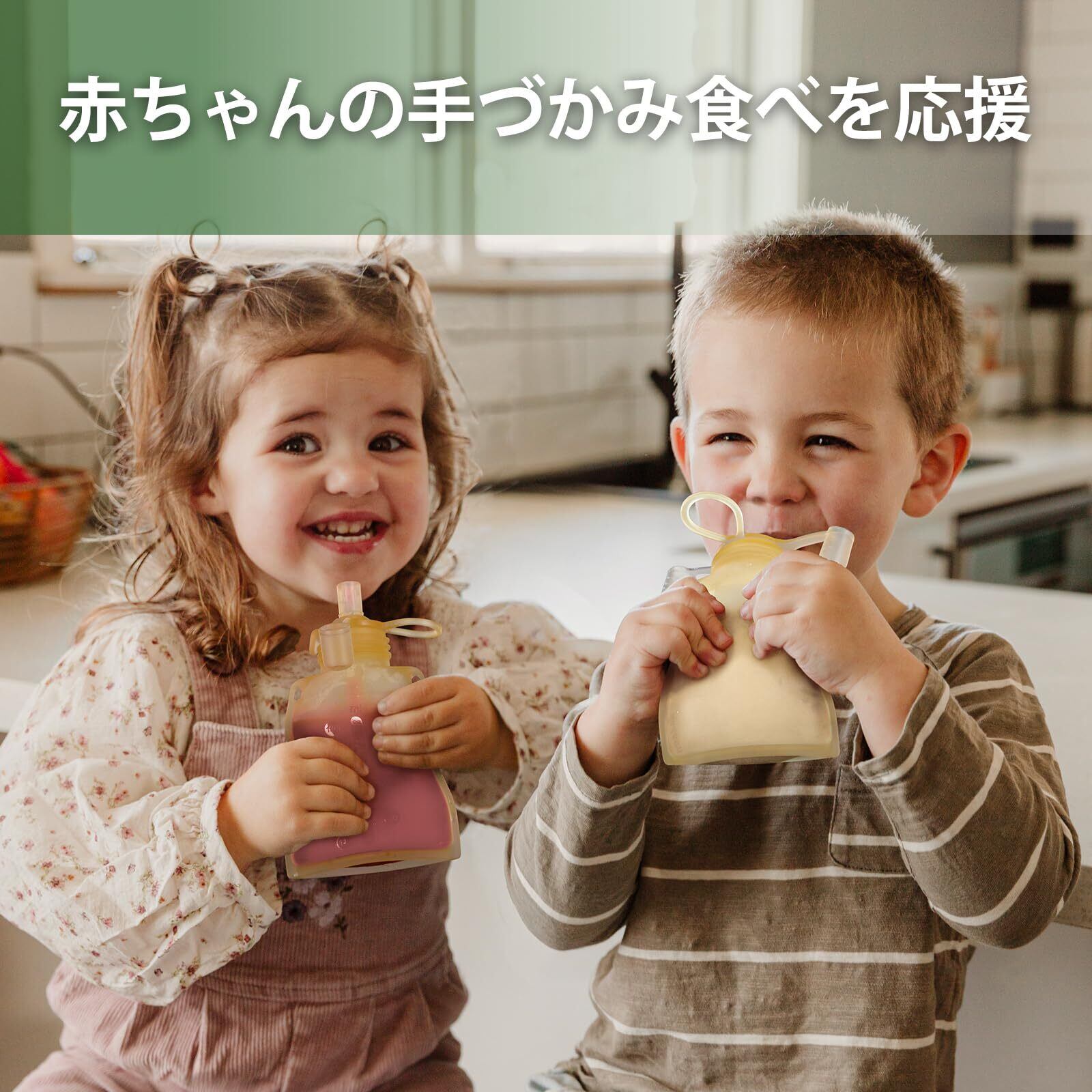 自己进食のサポート: これらのリユーザブルポーチは、幼児や赤ちゃん向けの流量調節機能付き開口部を備え、安全でペースを自分でコントロールできる食事をサポートします。ソフトなシリコン製ノズルは赤ちゃんの口をやさしく包み、固形食へのスムーズな移行をサポート——安心して手づかみデビューを応援します。