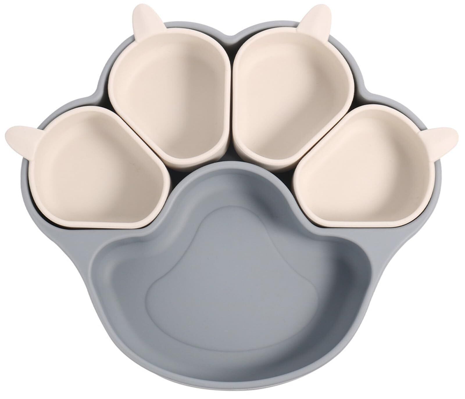 ベビー食器セット 5グリッド 吸盤付き ひっくり返らない 離乳食対応 食品級シリコン製 滑り止め&分離式デザイン 出産祝い ギフト対応 猫の爪 かわいいカラフルデザイン (青)