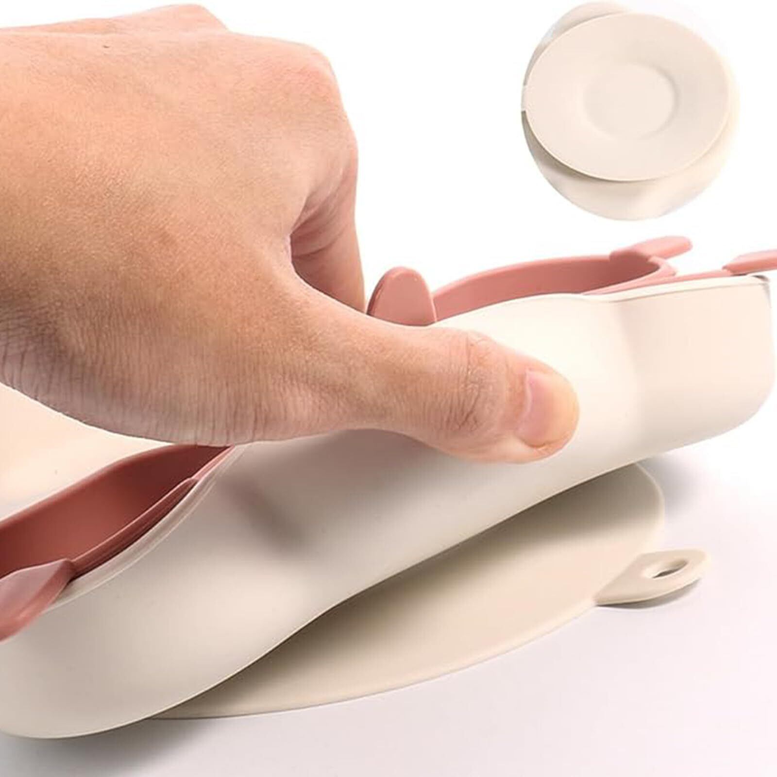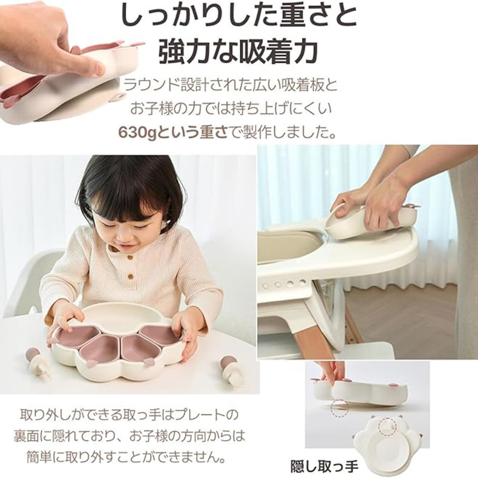 プレートとボウルは、吸盤でテーブルに固定でき、ひっくり返すことなくお食事可能。 底が深いからトロっとしたものも上手に食べられます。