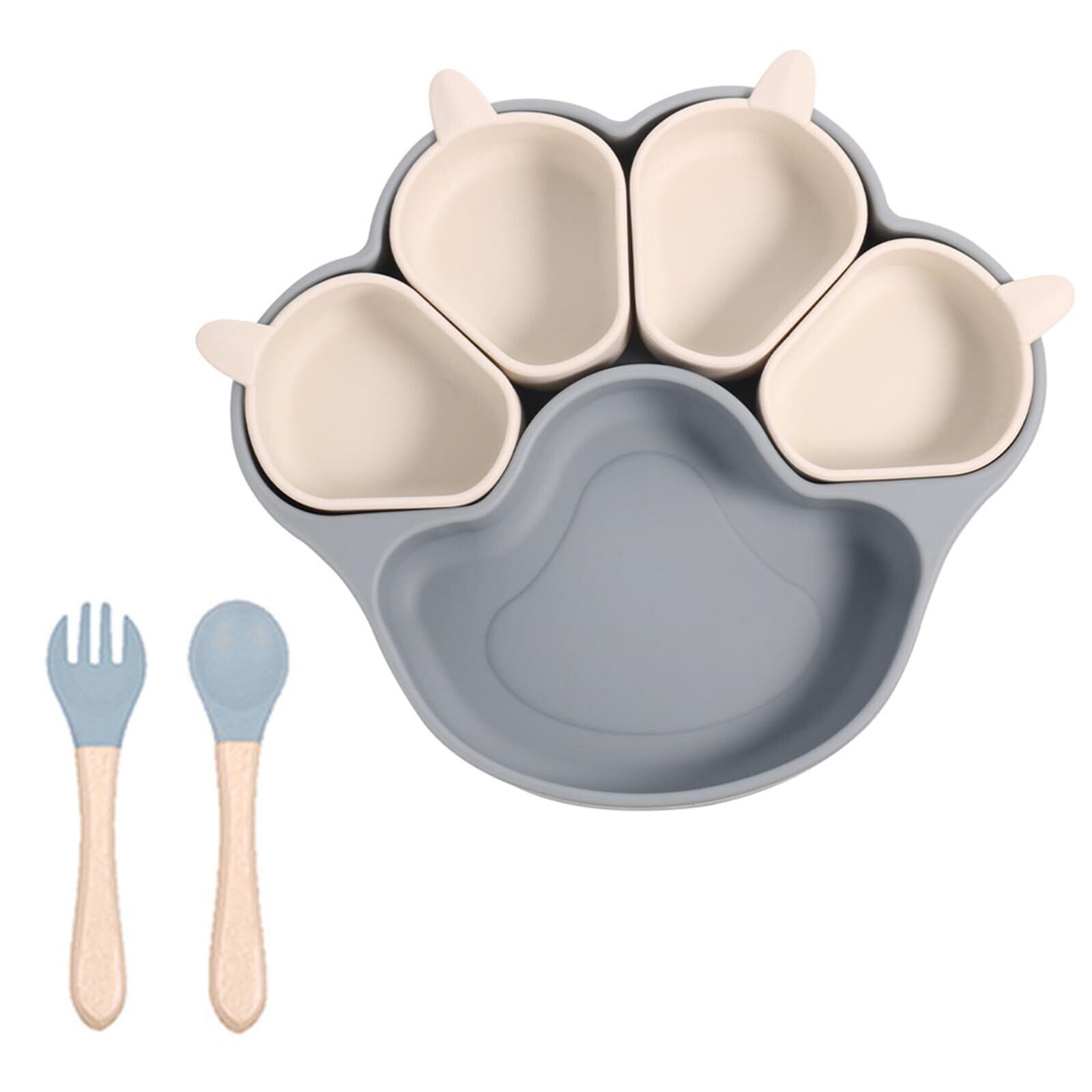 ベビー食器セット 離乳食 赤ちゃん用可分離式食器 ひっくり返らない 吸盤 すくいやすい シリコン ボウル スプーン フォーク トレーニングカトラリー