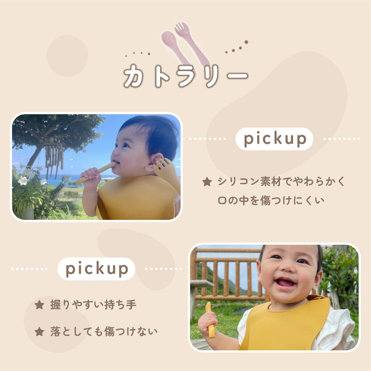 食器セット: 離乳食用のプレート、ボウル、スプーン&フォーク、マグカップ(スナックカップ)が揃った6点セット。