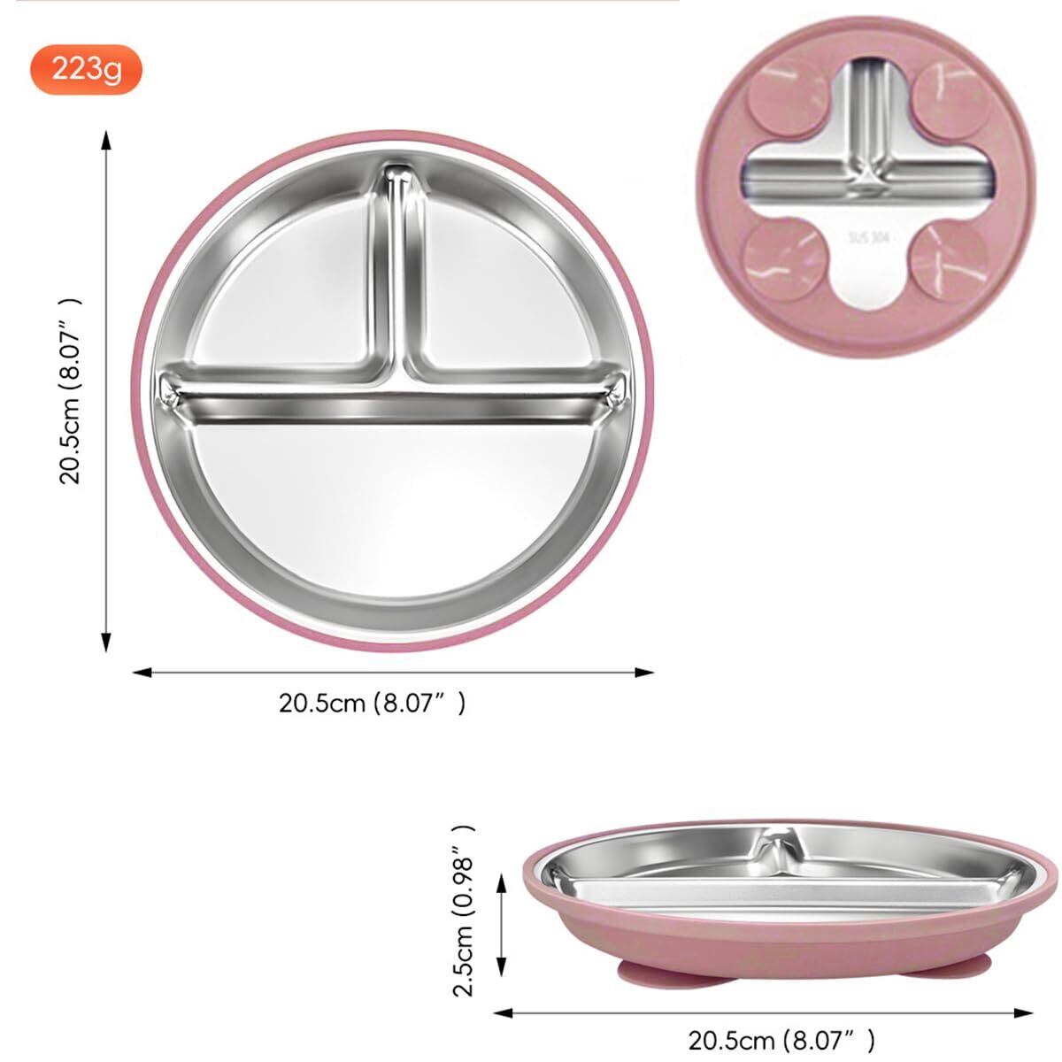 この可愛いベビー食器セットは、お子様の成長に合わせてデザインされています。 仕切り板が3つ付いており、異なる食材を分けて盛り付けできるので、離乳食期の食事管理に最適です。 素材はステンレス製なので、赤ちゃんにも安心です。 底面の強力な吸盤でテーブルにしっかり固定され、お子様が食器をひっくり返すのを防止します。 分解可能なデザインで洗浄も簡単で、衛生的にお使いいただけます。