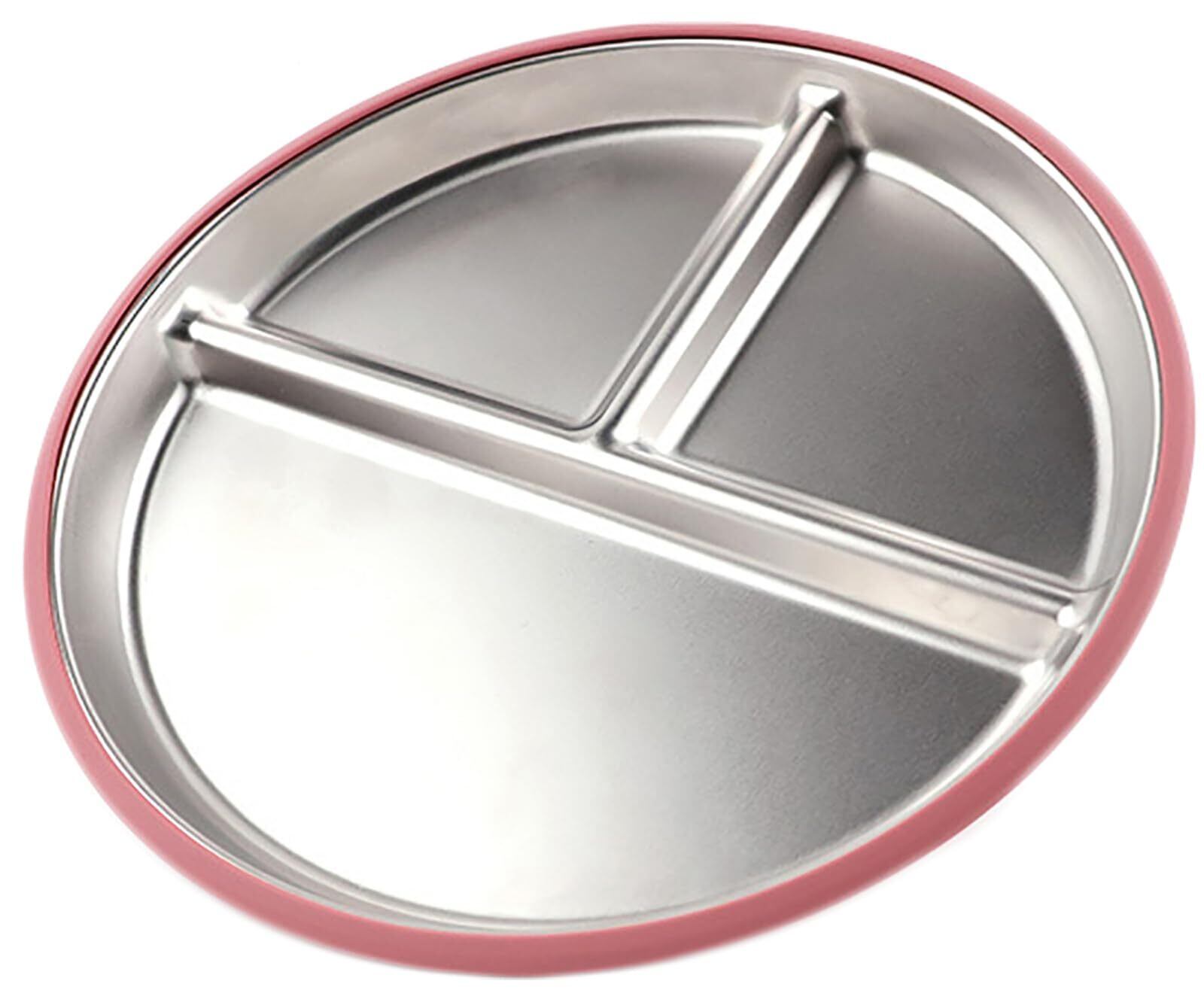 ベビー食器セット 3グリッド 吸盤付き ひっくり返らない 離乳食対応 ステンレス製 滑り止め&分離式デザイン 出産祝い ギフト対応 (赤)