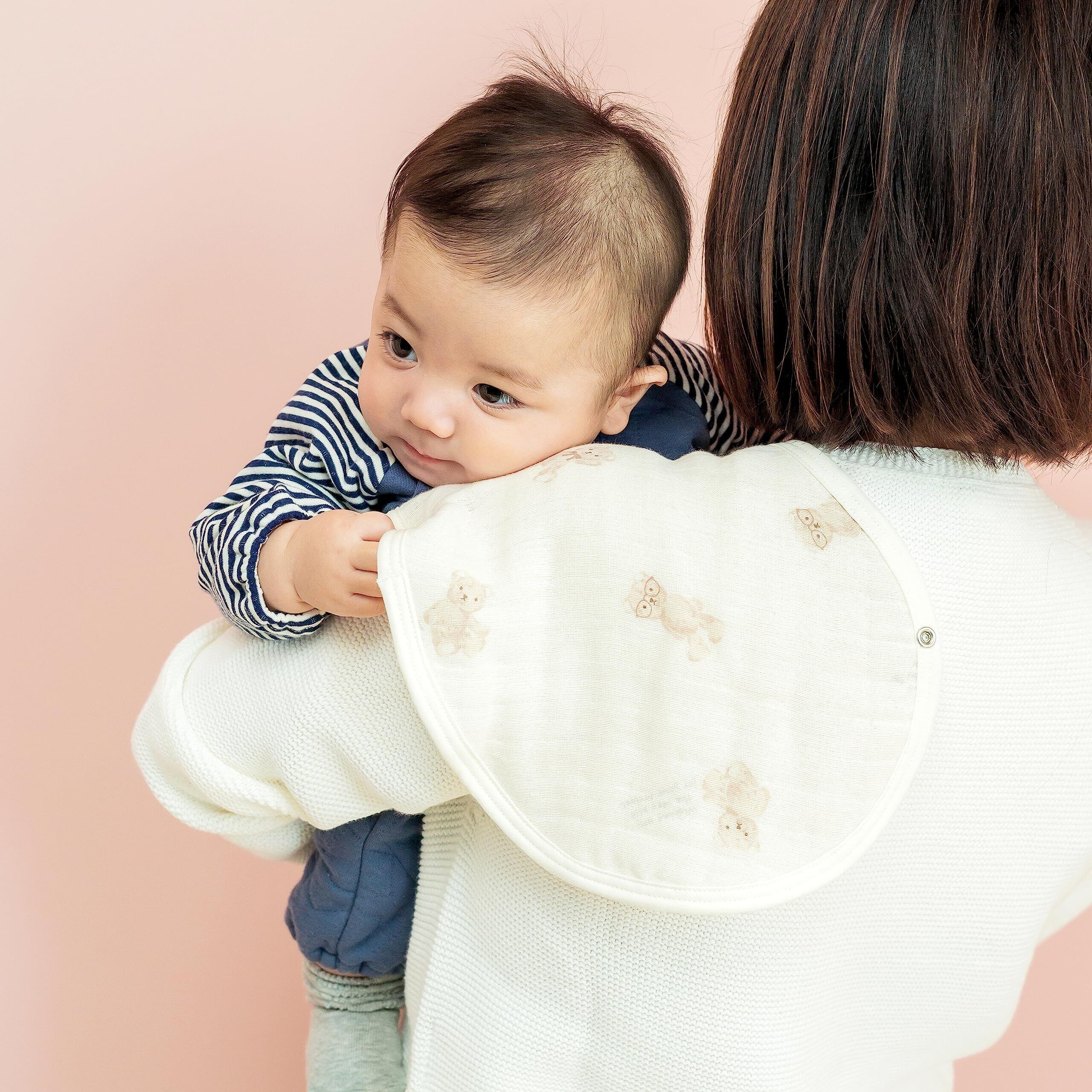 やわらかな六重ガーゼの便利なバープクロスです。授乳後、赤ちゃんのげっぷや吐き戻しでママのお洋服が汚れるのを防ぎます。スナップを留めると、赤ちゃんのよだれかけとしてもお使いいただけます。やわらかな六重ガーゼで、よだれをしっかり吸収し、スタイとしても使える1枚二役の便利なクロスです。ベビーとママが兼用できる便利アイテムは、ギフトのプラスワンアイテムとしてもおすすめです。