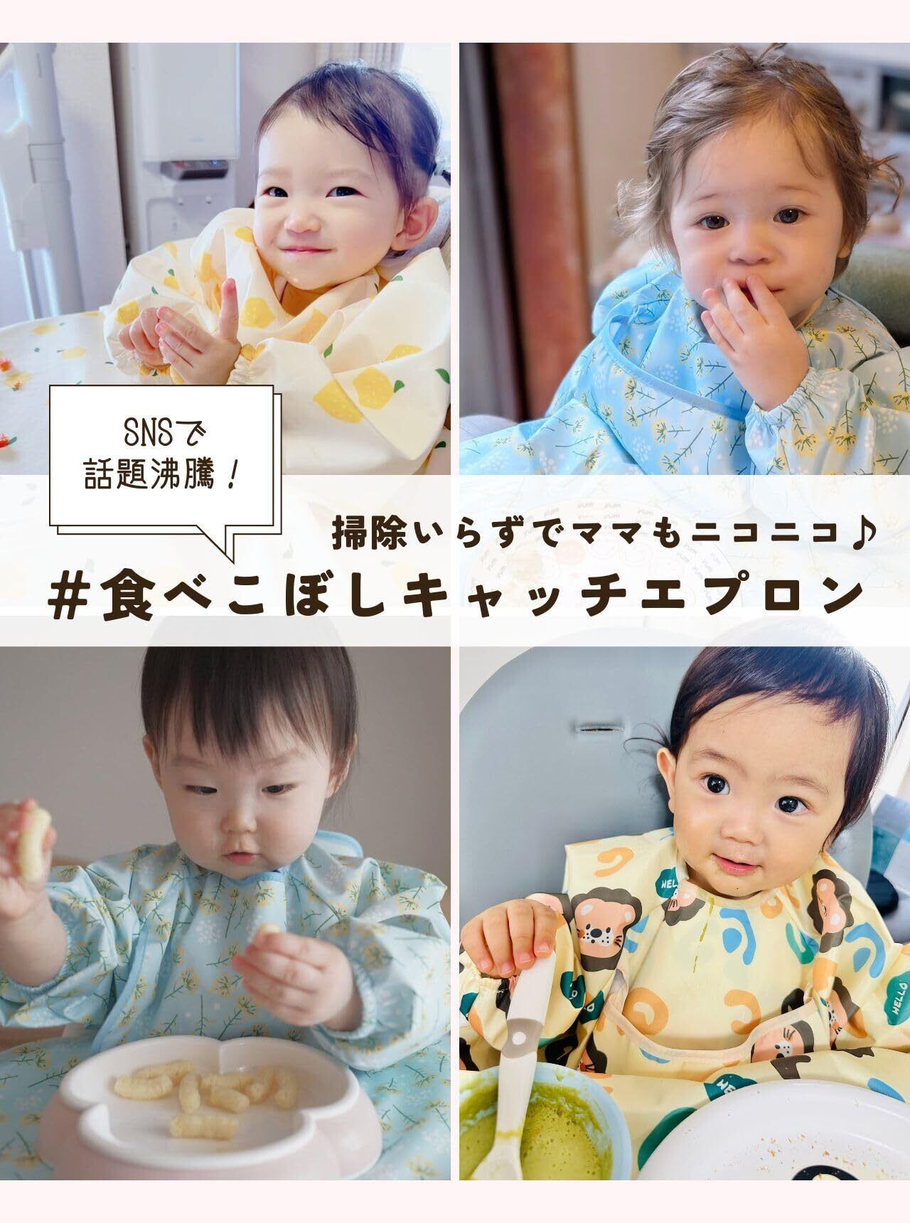 [Peopensee] お食事エプロン 赤ちゃん 食べこぼし 長袖 【食べこぼし、怖くない!掃除いらずでラクチン】テーブルクロス一体型エプロン 離乳食 ベビー BLW 手づかみ食べ 撥水 調節可能 洗濯機OK 保育士推奨
