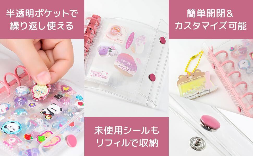 【貼ってはがせて繰り返し使える】 半透明ポケット仕様のため、シールを傷つけにくく、貼ってはがして繰り返し収納可能。 大切なシールをきれいな状態で保管できます。