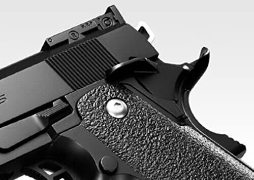 20mmアンダーレイル装備で各種オプションパーツ装着可能。 グリップを握りながら押込む「グリップセーフティー」採用。 ハンマーが発射に連動して作動。 装弾数16発のマガジン装備。