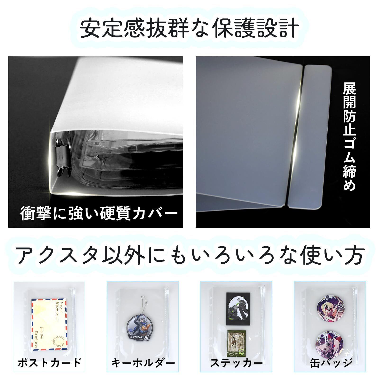 【A5対応!2冊でアクスタ20個収納可能!】A5サイズのファイルは市販のアクスタをゆったり収納でき、最大は20*12cmまでのアクスタに対応可能です。2冊セットで最大20枚のアクスタを纏めて収納できます。アクスタ全体をファイルに覆うように収納でき、ホコリや汚れからコレクションをしっかり守ってくれます。