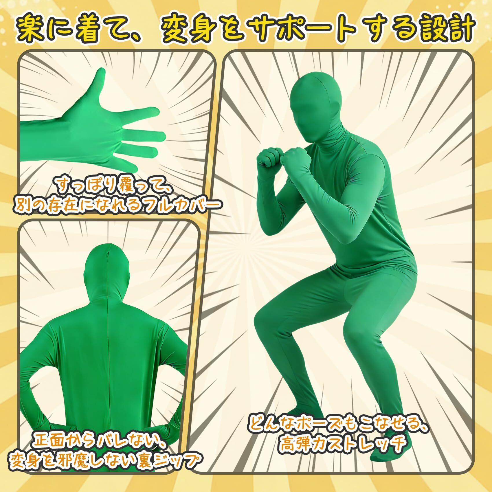 【新着商品】全身タイツ コスプレ 仮装 顔出し - コスチューム ストレッチ 伸縮 ハロウィン 変装 学園祭 文化祭(グリーン顔出し 2XL)