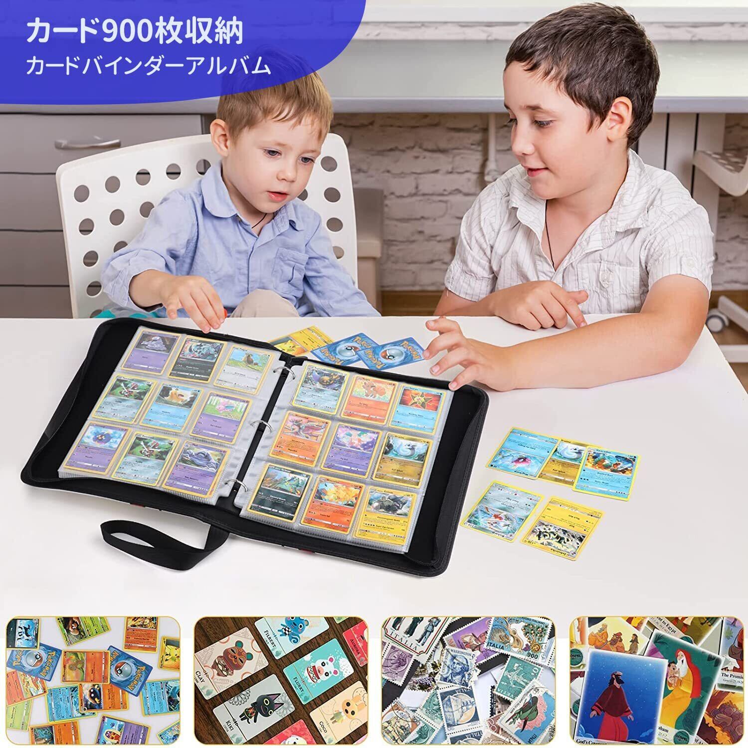 【サイズ&容量】カードファイル全体サイズ33.5x27x5cm、単一メッシュサイズ6.8x9.2cm、各ページ9ポケット、900枚収納可能、50枚入り。