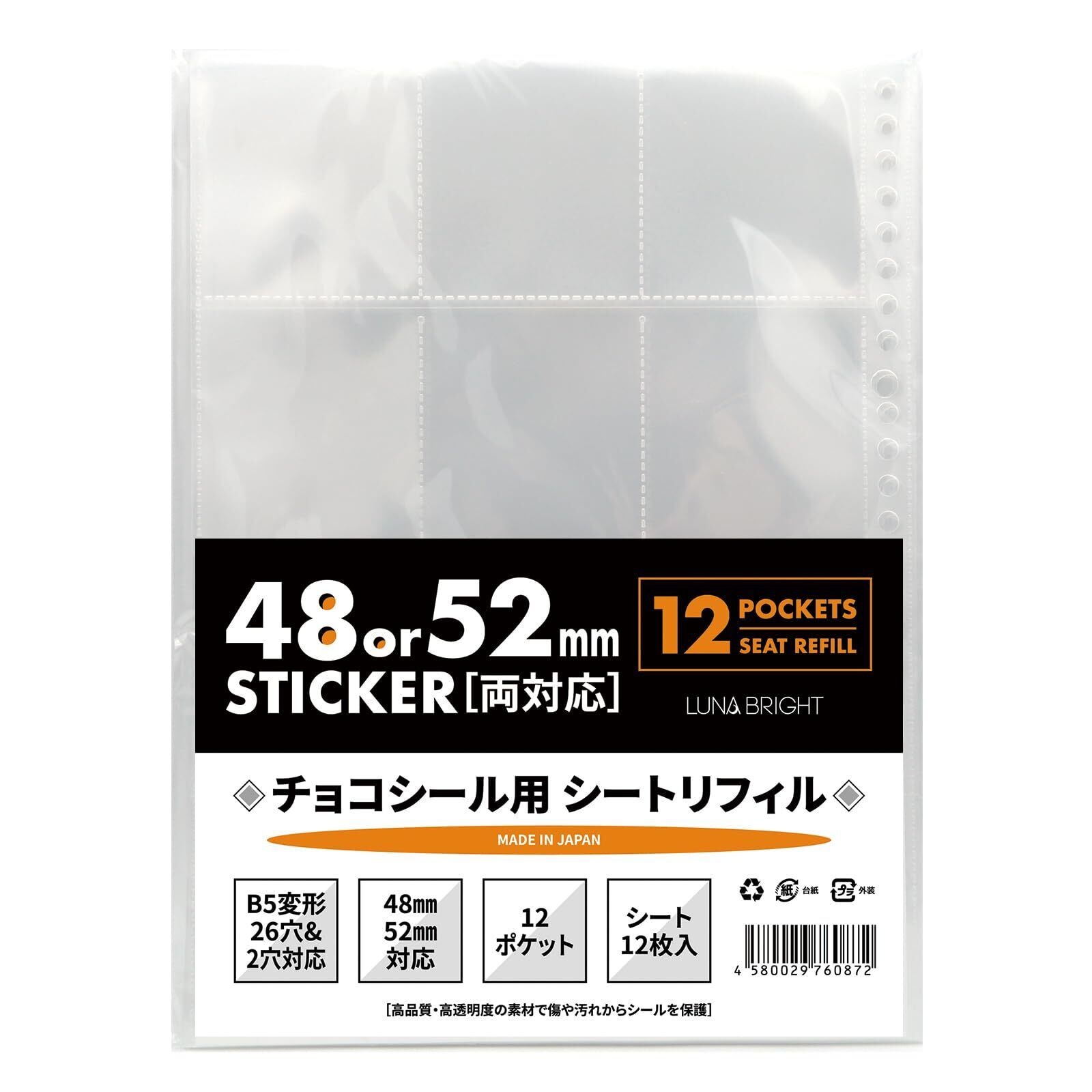 内容:シート12枚(52mm四方のシールに対応)