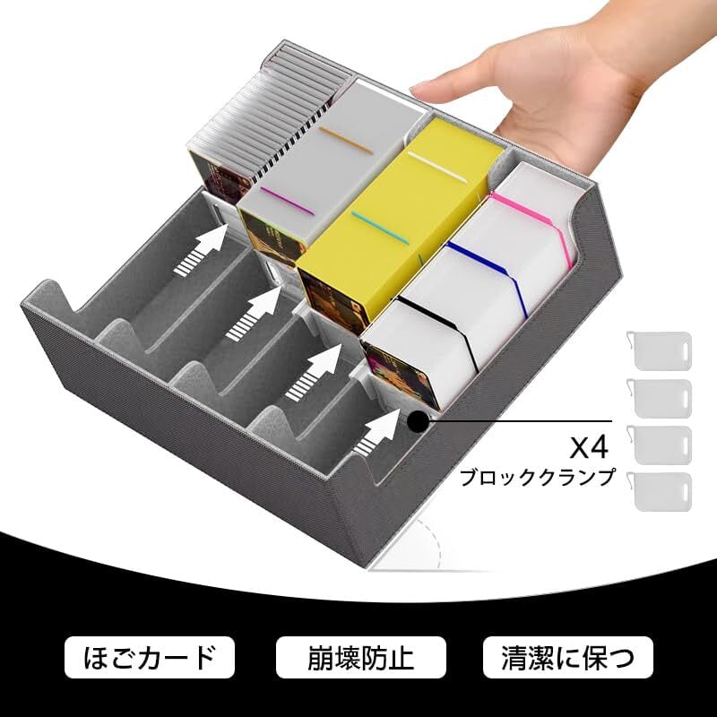 【2022最新】カードボックス 3000枚収納(4列)カードボックス トレッカーズ PUレザー 縦型 カード収納 4コンパートメント 24バッフル付き トレッカーズ カードボックス カードボックス PUレザー 収納ボックス カードボックス トレーディングカードゲーム、デラックスマグネットカードボックス、スタンダードゲームカードボックス (灰色, 四列)