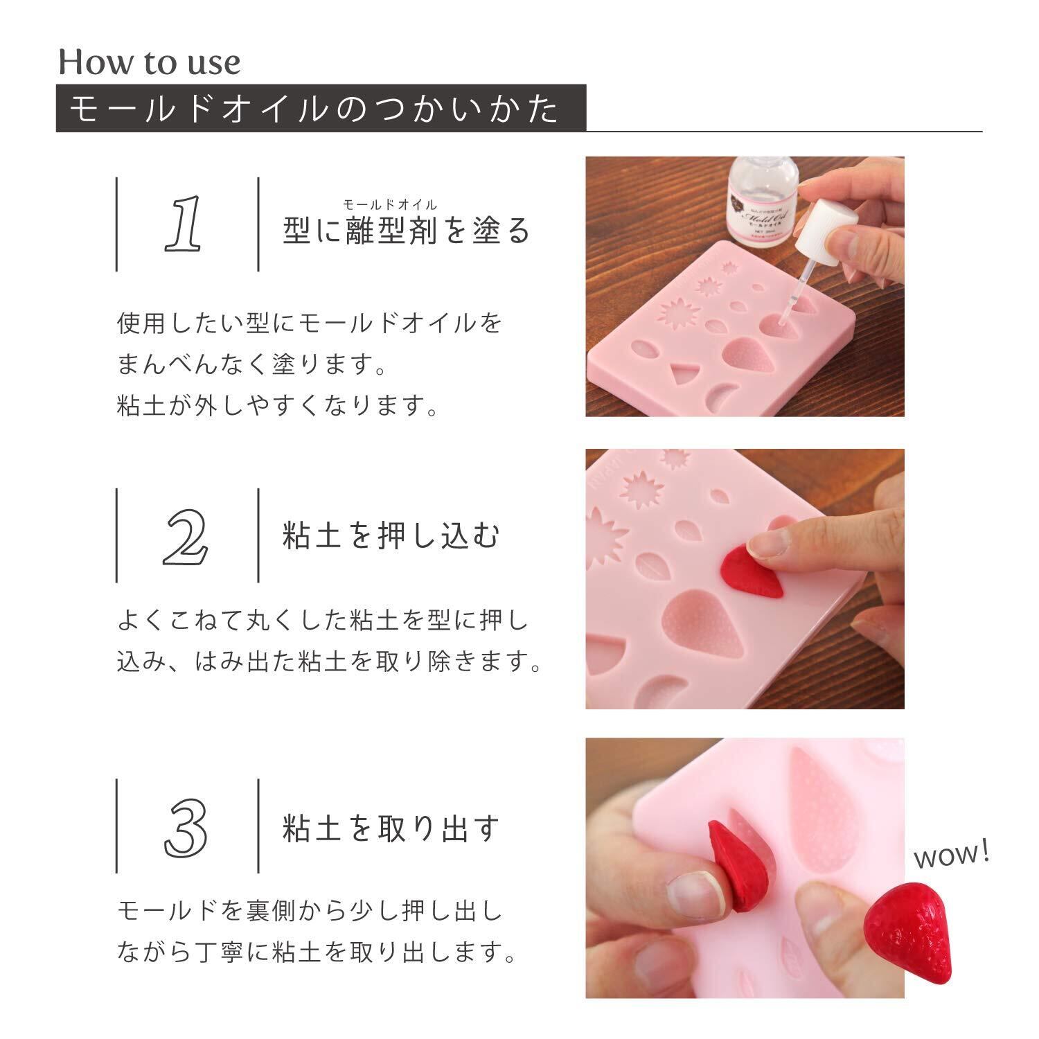 塗りやすい刷毛付きボトルで、型の細かいところまでムラなくぬれます。 使用できる型:プラスチック製、シリコーン製、金属製