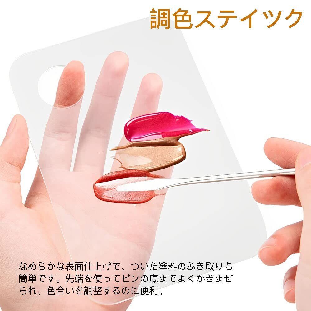 【スポイト】塗料皿に塗料に移すなどの場合に役に立ちます。付属のスポイトは、自分の好きな色合いを微調整するのに便利な道具です。