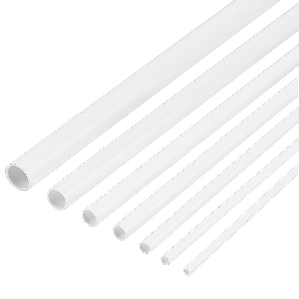 BENECREAT 48本7サイズ プラ材 中空丸棒 25cm長さ プラパイプ 丸管 2/3/4/5/6/8/10mm ABSプラスチックロッド DIY サンドテーブル 建築模型製作用 クラフト ホビー用素材 ホワイト