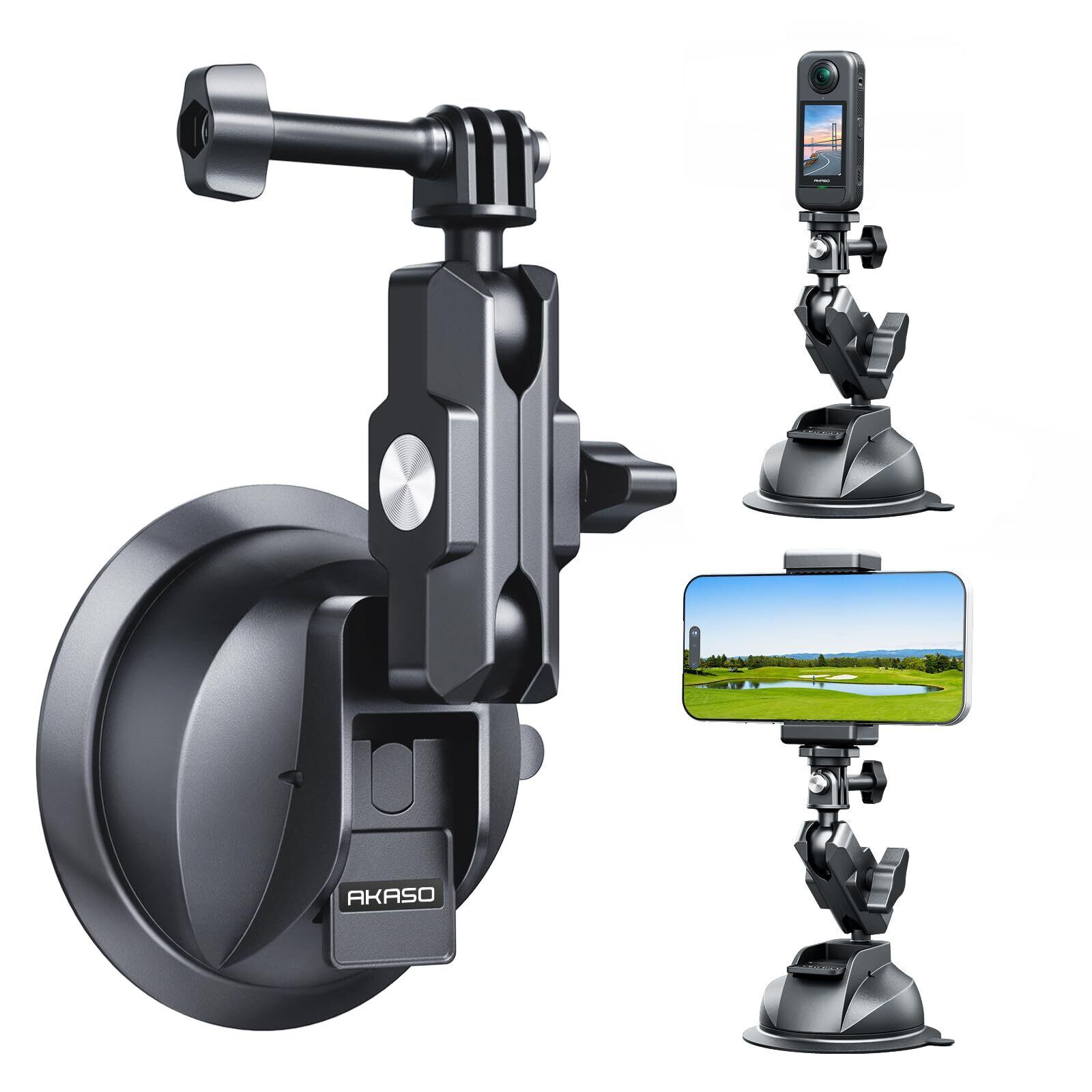 【特価商品】AKASO 吸盤マウント 車載マウント GoPro Insta360 DJI カメラ用 360°回転 車載ホルダー スマホホルダー 取り付け簡単 GoPro Hero 13/12/11/10/9、Insta360 X5/X4/X3、DJI Action/Osmo、EK7000/Braveシリーズ対応