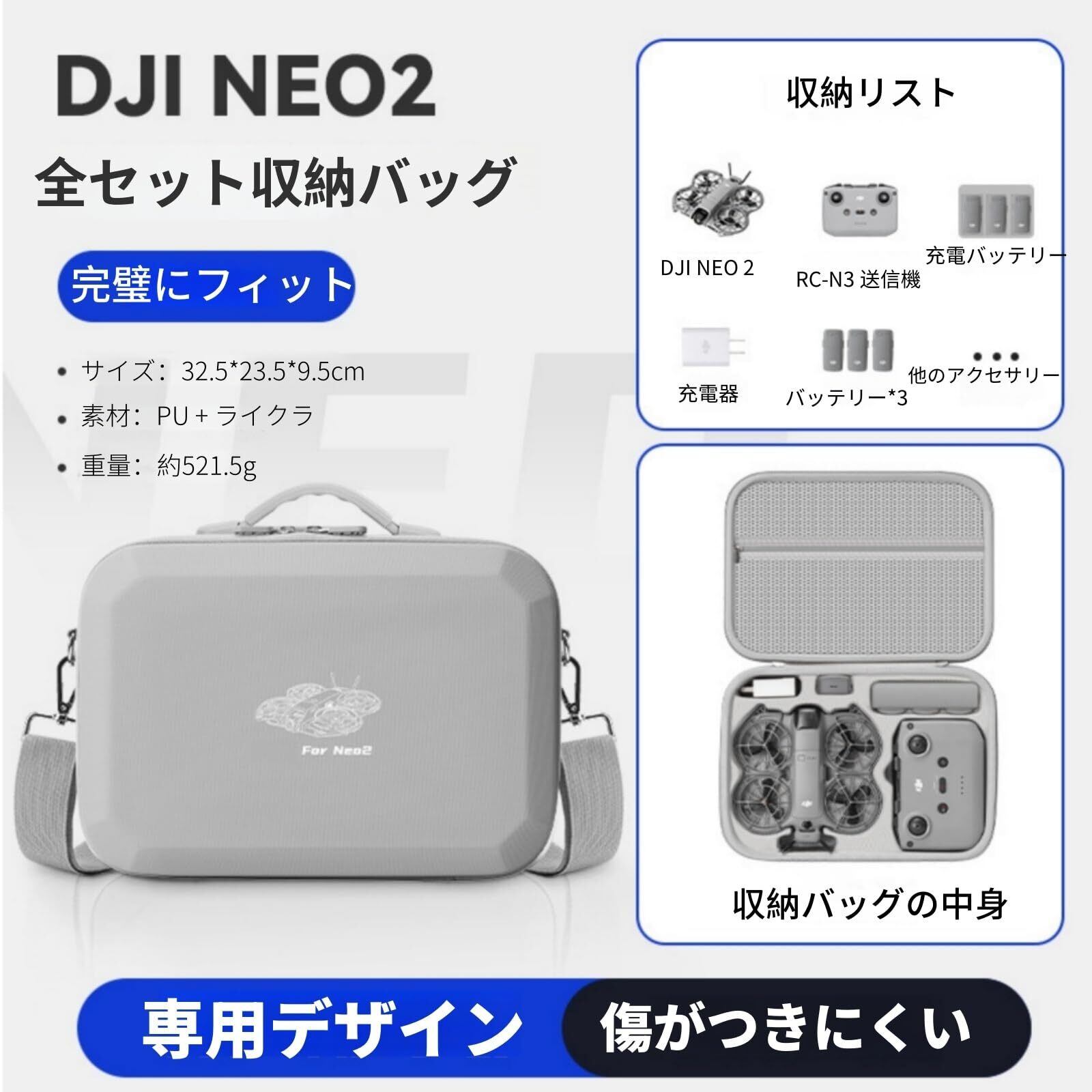 専用設計: DJI Neo 2に完璧にフィットする設計で、機器をしっかりと固定し保護します